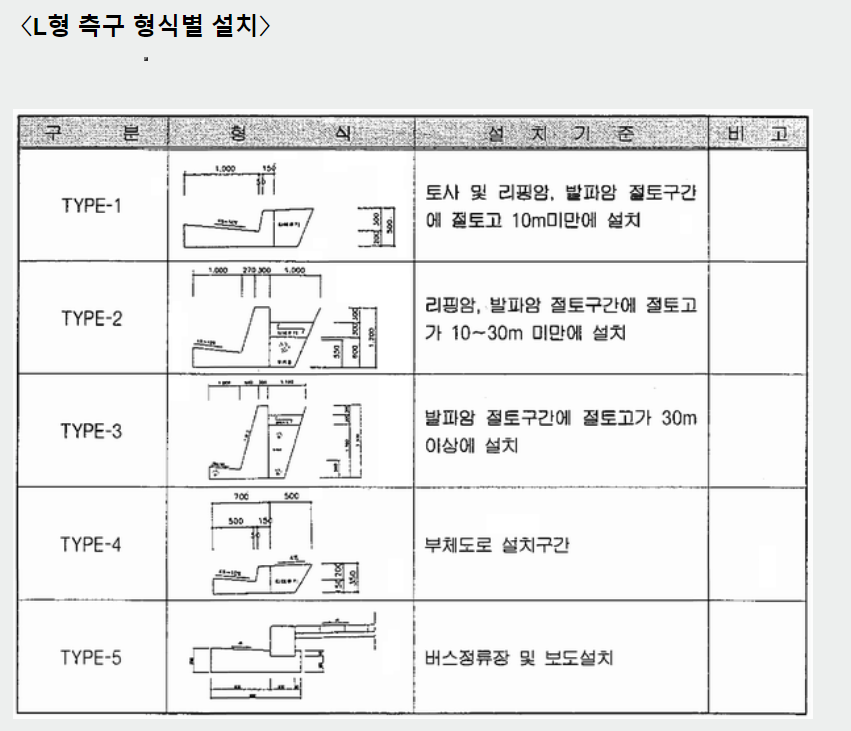 L형측구 형식별 설치기준 파일 올려드립니다.