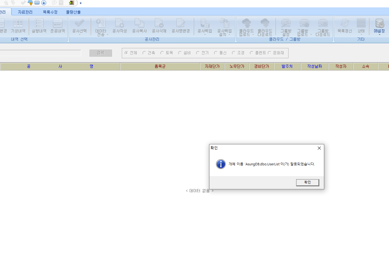 개체 이름 ´´AsungDB.dbo.UserList´´이(가) 잘못되었습니다.